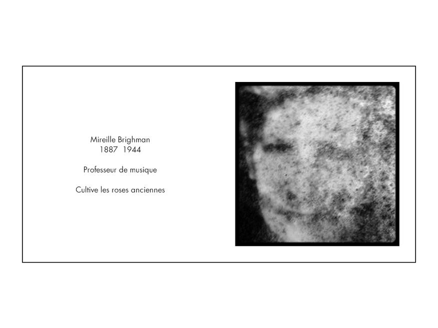 Photographies de plaques tombales. Les noms, prénoms, dates, métiers et passions sont imaginaires et créés d'après l'émotion suggérée par le portrait