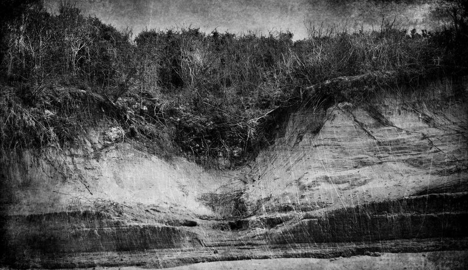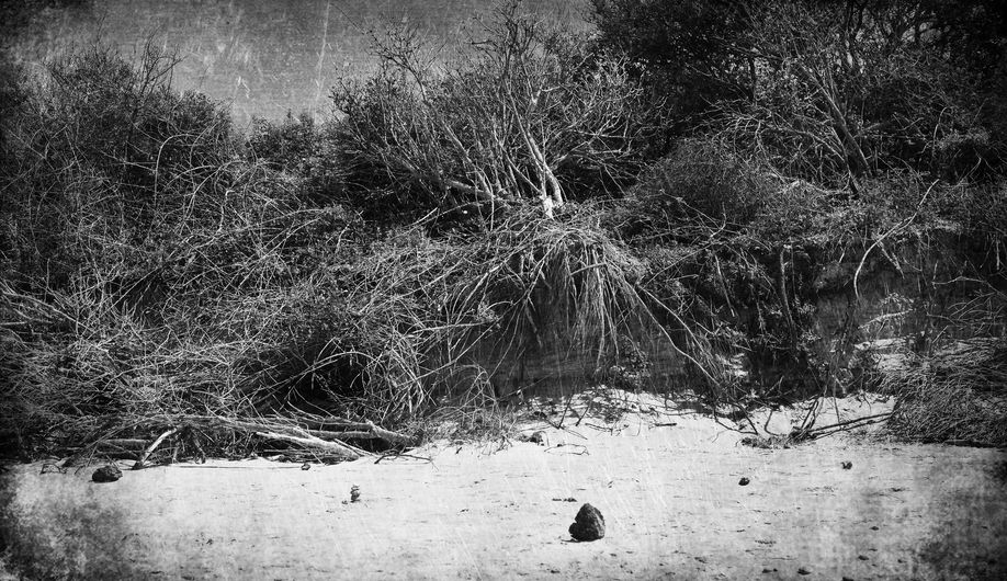 A la limite du rivage et des dunes naissance se situe cet espace, ce no man's land où la nature rejetée de l'eau et celle enracinée au cœur des dunes forment une frontière. Une orée presque infranchissable.... Prises de vues en poses courtes et tirages sous matières.