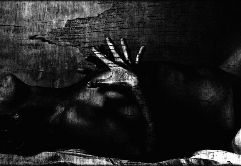 Pour cette série sur le corps, le contraste s’atténue, les lignes se dissolvent. Une forme de grain s’impose, le flou se joue du mouvement. Des traces et lacérations font irruption dans des compositions où les corps et la matière environnante s’interpénètrent, s’entrelacent pour se fondre dans une unité hypnotique. Je souhaitais que tout y soit mouvant, fluide et fugace. Capturer l’impression de ces formes, de ces corps eux-mêmes composés d’une matière instable.
